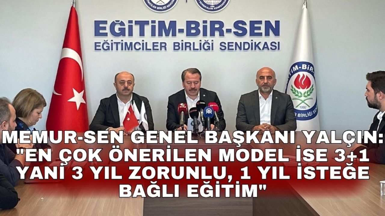 Araştırma sonucu zorunlu eğitim süresinin toplumun beklentileri ve hayatın gerçekleriyle uyumlu hale getirilmesi gerektiğini vurgulayan Yalçın, "Katılımcıların yaklaşık yüzde 90'ı lise son sınıfın üniversite hazırlık ve kariyer planlama yılına dönüştürülmesi gerektiğini savunuyor. Araştırma esnek ve modüler orta öğretim modellerine güçlü bir destek sunuyor. En çok önerilen model ise 3+1 yani 3 yıl zorunlu 1 yıl isteğe bağlı eğitim ve 2+2, 2 yıl zorunlu 2 yıl isteğe bağlı şeklinde 2 seçenek bu araştırmada öne çıkıyor. Eğitim Bir-Sen olarak bu bulguların sistemin süre, içerik ve yapı bakımında yeniden düzenlenmesi ve bir yol haritası oluşturulması konusunda önemli ipuçları sunduğunu düşünüyoruz. Sonuç olarak araştırmamızda elde ettiğimiz bulgular doğrultusunda zorunlu eğitim süresi toplumun beklentileri ve hayatın gerçekleriyle uyumlu hale getirilmelidir" açıklamalarında bulundu.