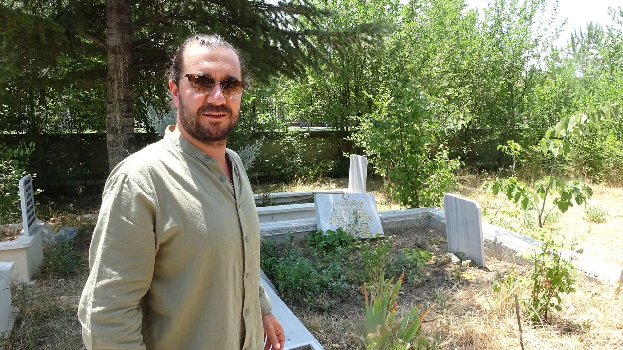 "Oğlum Ömer'in mezarını küçük oğlum Fatih'le beraber ziyarete geldik. Ama çok enteresan bir olayla karşılaştık. Bir tane karga suluğun içerisine yatmış. Ben kaçar diye bekliyordum ama kendini okşattırdı."