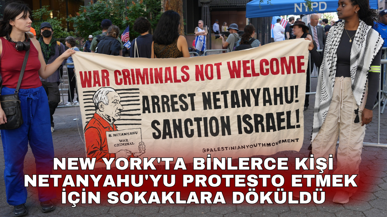 Bazı göstericiler, Gazze'de insanlığa karşı işlenen suçlar ve savaş suçları nedeniyle aleyhinde Uluslararası Ceza Mahkemesi (UCM) tarafından hakkında tutuklama emri bulunan Netanyahu'nun, New York'a gelmesine izin verilmesini "korkunç bir durum" olarak nitelendirdi.