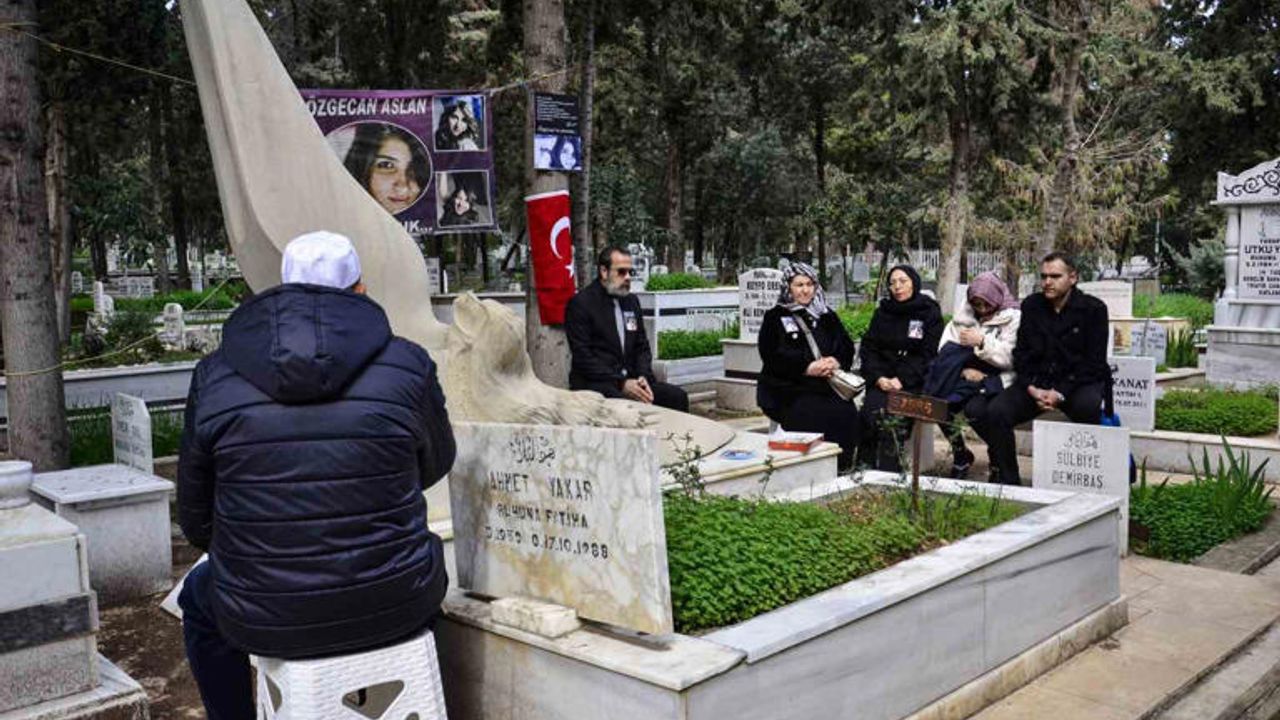 Mersin'in Tarsus ilçesinde 11 Şubat 2015'te okulundan evine dönmek üzere bindiği minibüste vahşice öldürülen üniversite öğrencisi 19 yaşındaki Özgecan Aslan, mezarı başında dualarla anıldı. Anne Songül Aslan, baba Mehmet Aslan ve yakınları, Özgecan'ın Toroslar ilçesi Akbelen Şehir Mezarlığı'ndaki kabrine gelerek, çiçek bırakıp dua etti. Anne Songül Aslan, kızının kabrine çiçek koyduktan sonra mezar taşını öptü, bir süre Kur'an-ı Kerim okudu.