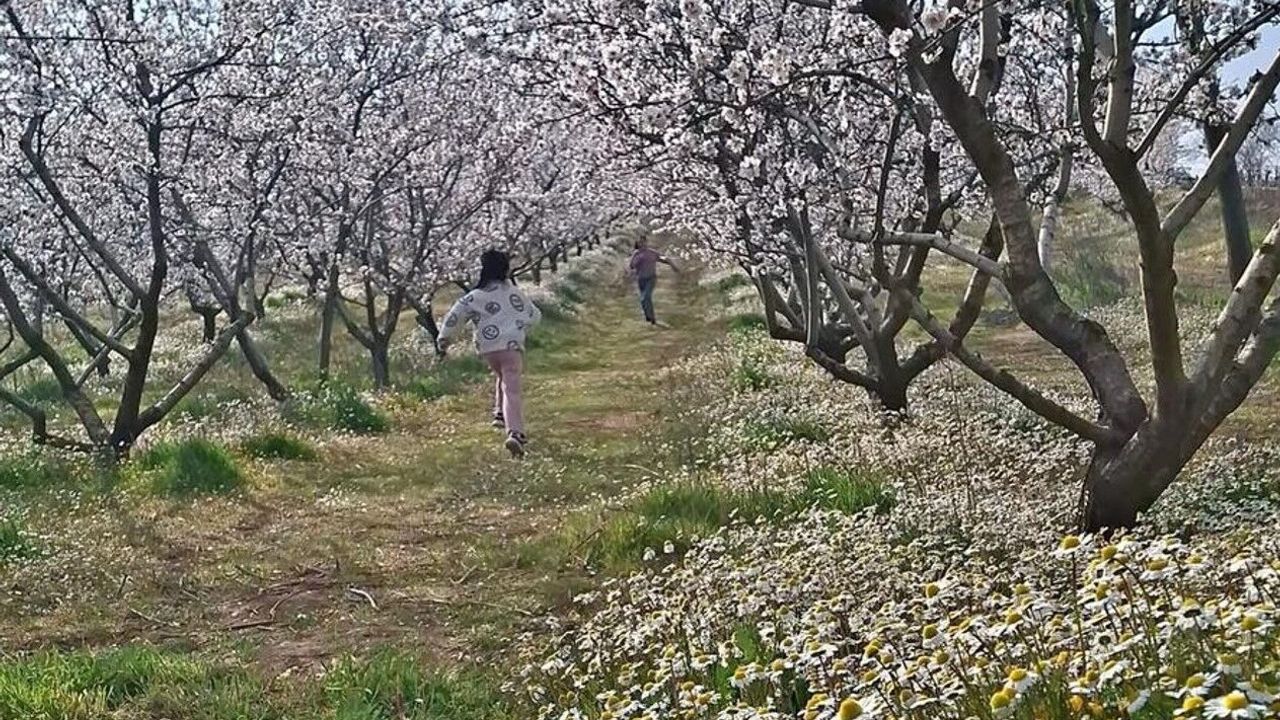 Mahalle sakinlerinden Halil Uygun, yıllar önce İlçe Tarım ve Orman Müdürlüğü tarafından bodur badem fidanlarının bölgeye dikildiğini belirterek, "Yıllar önce İlçe Tarım ve Orman Müdürlüğü tarafından elle kırılabilen bodur badem fidanları dağıtılmıştı. Tarla komşumuz da 5-6 dekarlık tarlasına bu fidanlardan dikmişti. Şimdi tüm badem ağaçları çiçek açtı. Toprak yeşerdi, papatyalar açtı. Ortaya çıkan manzara bizleri dinlendiriyor. Buraya ailece gelip fotoğraflar çekiliyoruz." dedi.