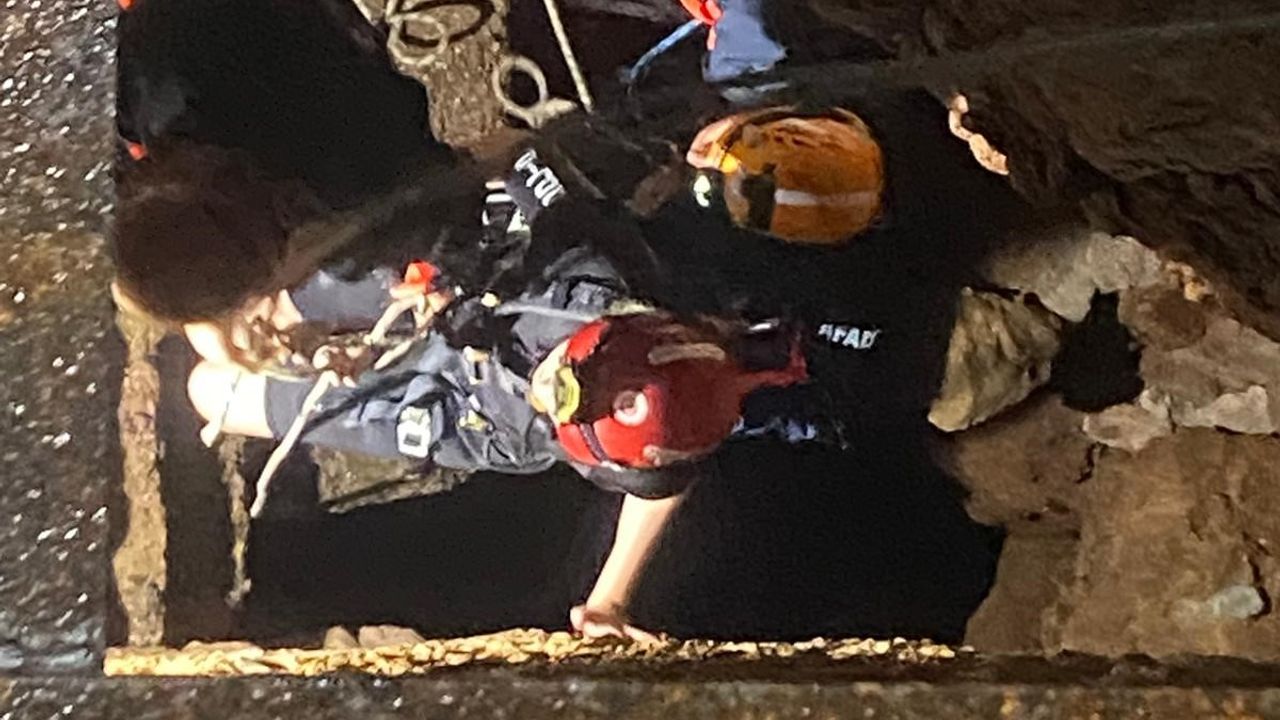Deniz Limanı Şube Müdürlüğüne Bağlı Gemi Adamları ekipleri, hava koşullarından dolayı mağaraya botla giremese de, bir kurbağa adam dev dalgalar olmasına karşın yüzerek mağaraya ulaştı. Ardından mahsur kalan kadına üşümemesi için polis dalgıç kıyafeti veren kurbağa adam, kara ekipleri ulaşıncaya kadar da gençlere refakat etti.
