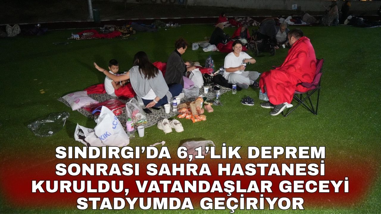 Öte yandan evlerinde kalmak istemeyen vatandaşlar, geceyi Sındırgı Atatürk Stadyumu’nda geçirdi. Kimi vatandaşlar stadyum içinde çadır kurarken, kimileri ise evlerinden getirdikleri battaniye, hasır ve yastıklarla kendilerine yatak yaptı.