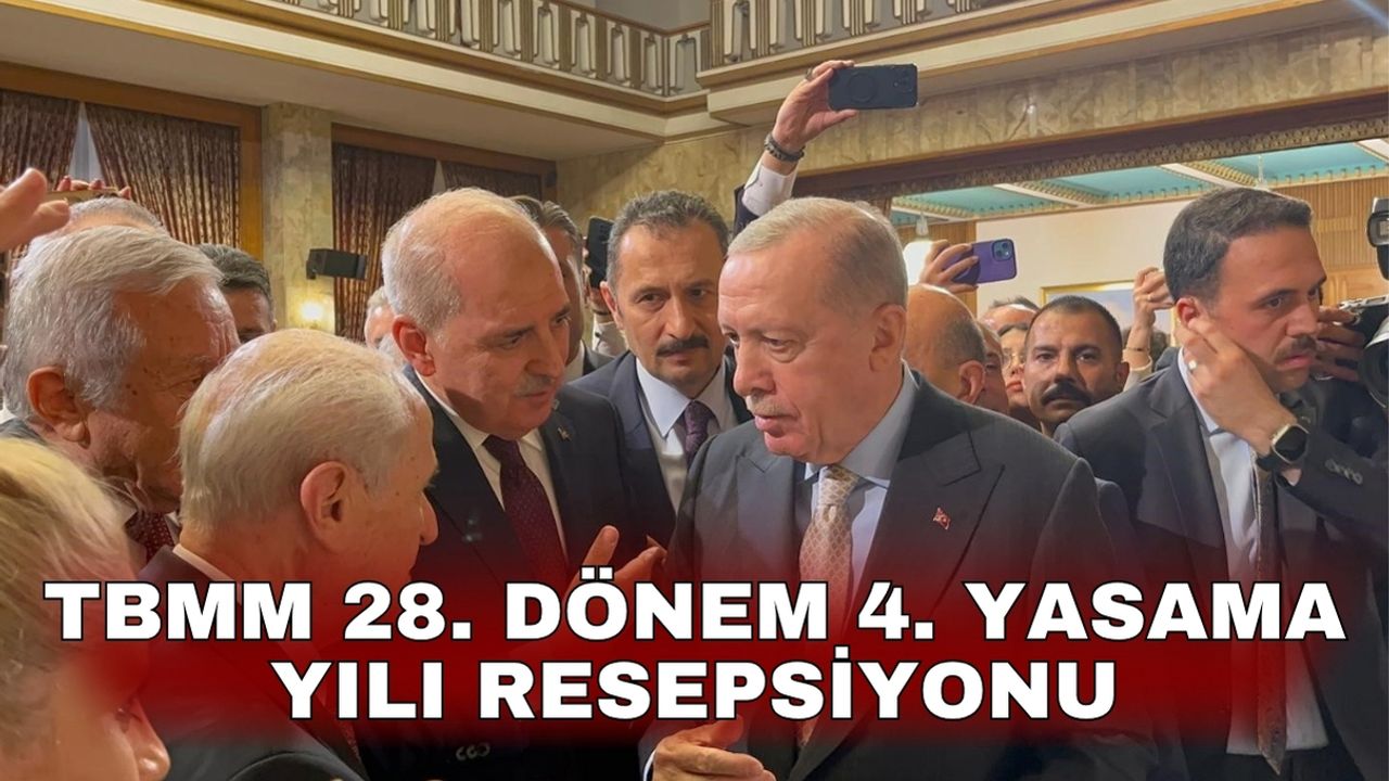 TBMM Tören Salonu’nda 28. Dönem 4. Yasama Yılı münasebetiyle resepsiyon düzenlendi. TBMM Başkanı Numan Kurtulmuş’un ev sahipliğinde düzenlenen resepsiyona, Cumhurbaşkanı Recep Tayyip Erdoğan, Cumhurbaşkanı Yardımcısı Cevdet Yılmaz, kabine üyeleri, MHP Genel Başkanı Devlet Bahçeli, DEVA Genel Başkanı Ali Babacan, Gelecek Partisi Genel Başkanı Ahmet Davutoğlu, Yeniden Refah Partisi Genel Başkanı Fatih Erbakan, HÜDAPAR Genel Başkanı Zekeriya Yapıcıoğlu, kuvvet komutanları ve diğer yetkililer katıldı.