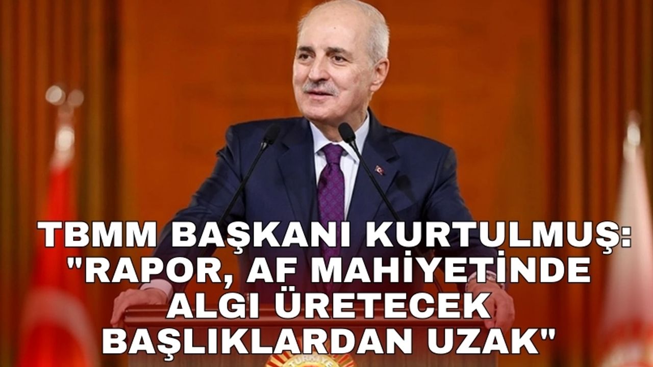 Raporun hukuk düzeninin belirlilik ilkesini merkeze alan ve kamu vicdanının hassasiyetini gözeten yaklaşımın ana hatlarını ortaya koyduğunu belirten Kurtulmuş, "Komisyonun ortaya koyduğu yaklaşım, örgütsel yapının feshi ve silah bırakmanın güvenilir biçimde teyidi ile birlikte yürürlüğe alınması düşünülen idari ve hukuki düzenlemelere rehberlik edecek ilkeleri belirlemeyi, tespit ve takip mekanizmalarında öngörülebilirlik sağlamayı, toplumla uyum adımlarını özgürlük ile güvenlik dengesini koruyan bir çerçevede tasarlamayı hedeflemektedir. Rapor, af mahiyetinde algı üretecek başlıklardan uzak duran, hukuk düzeninin belirlilik ilkesini merkeze alan ve kamu vicdanının hassasiyetini gözeten yaklaşımın ana hatlarını ortaya koyarken, devlet aklı ile millet vicdanını koruyan demokratik iradenin aynı bütünlük içinde harekete geçtiğinde toplumsal barışın kalıcı zeminini kurduğuna işaret etmektedir. 'Terörsüz Türkiye' hedefi, daha geniş bir ufukla terörsüz bir bölge tasavvuruna açılmakta; iç huzuru pekiştiren her adım, bölgesel ve küresel adalet arayışında Türkiye'nin gücünü artırmaktadır. Meclisimizin görevi müşterek hayatın hukukunu kurmak, farklılıkların sesini ortak geleceğin sesine katmak, her yurttaşın kendini eşit, güvende ve saygın hissettiği demokratik yapıyı güçlendirmek ve hürriyet ufkunu genişletmektir" ifadelerini kullandı.