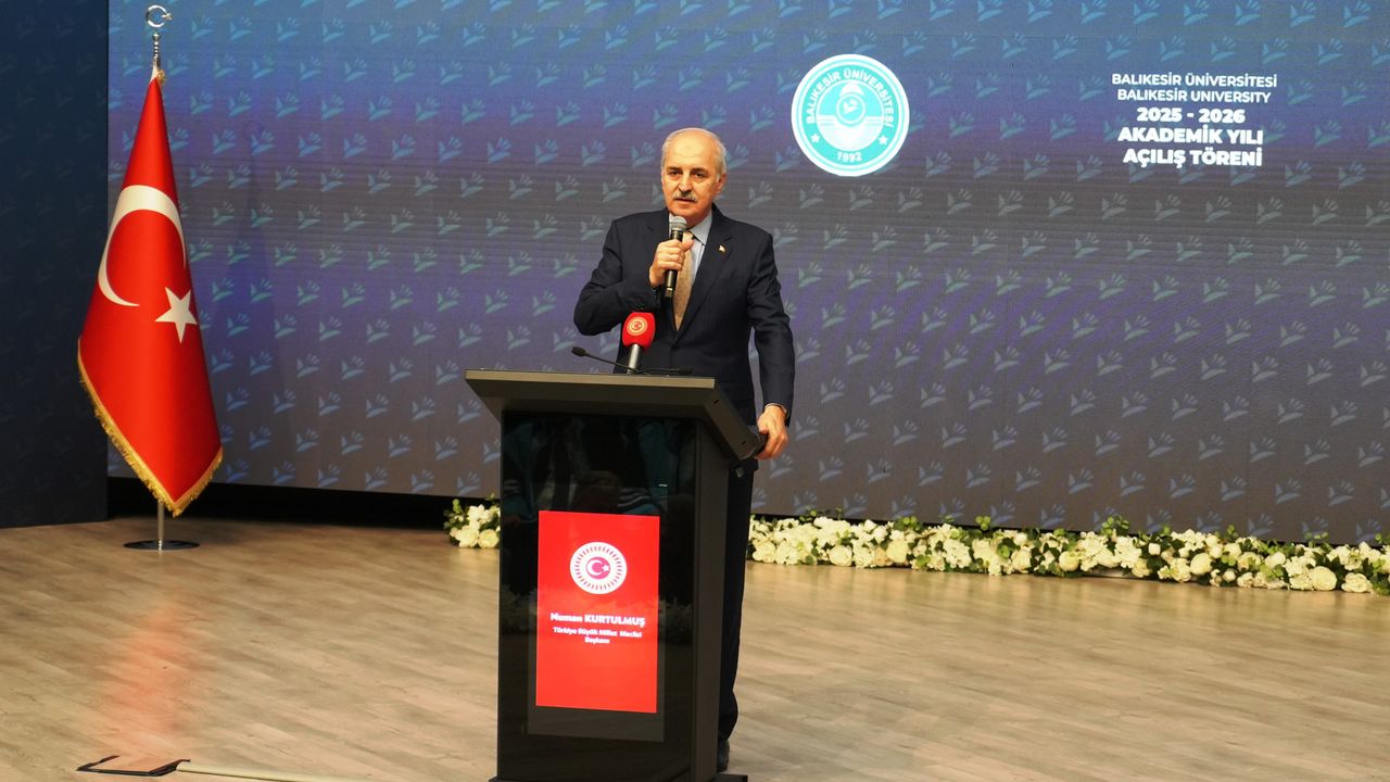 TBMM Başkanı Numan Kurtulmuş, Balıkesir Üniversitesi'nde öğrenciler ve öğretim görevlileri ile bir araya geldi. Ders niteliğindeki konuşmasında terörsüz Türkiye'ye değinen Kurtulmuş, "İçinde bulunduğumuz şehir Türkiye'nin önemli şehirlerinden bir tanesidir. Burası Kuvayi Milliye'nin merkezidir, kalesidir. Burası Reddi İlhak Cemiyetinin kurulduğu yerdir. Manevi iklimi son derece yüksek, ülkemizin bağımsızlık, istiklal ve istikbal mücadelesinin abidevi şehirlerinden Balıkesir'dir. Dolayısıyla Balıkesir'de sizlerle birlikte olmaktan büyük memnuniyet duyduğumu ifade etmek isterim. Balıkesir aslında yakın Türk tarihinin bir özeti gibidir. Düşmana karşı eğilmemek, teslim olmamak, milli ruhumuzu, milli onurumuzu en zor şartlarda korumak ne demektir onu göstermiş olan bir şehirdir. Hasan Basri Çantay'ın, Vehbi Çıkrıkçıoğlu'nun, Mehmet Akif Ersoy'un burada ilmek ilmek dokuduğu bir Milli Mücadele ruhu söz konusudur. Burada Alacamescit'te 41 abidevi şahsın başlatmış olduğu bir Kuvayi Milliye Hareketi vardır. Her şeyden evvel o zor şartlarda; yokluğun artık kelime dahi içinde bulunduğumuz şartları ifade edemediği o dönemde ayağa kalkarak emperyalistler karşısında eğilmeyeceğini göstererek kurdukları Reddi İlhak Cemiyetiyle birlikte, yani yabancılar tarafından ilhak edilmeyi, yutulmayı reddetme cemiyetiyle birlikte o günkü Milli Mücadele'nin ateşini yakmış olan bu 41 abidevi şahsiyeti rahmetle, şükranla, minnetle andığımı ifade etmek isterim" dedi.