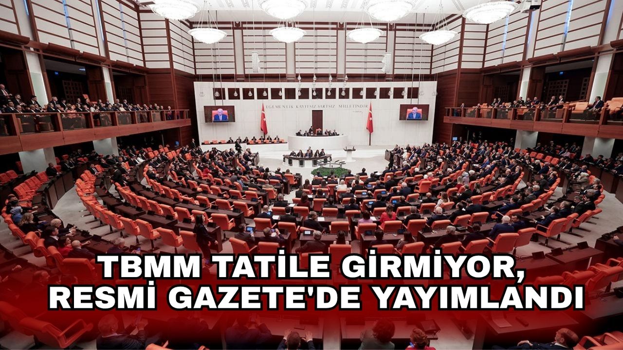 Kararda, “Anayasa’nın 93’üncü, TBMM İçtüzüğü’nün 5’inci maddelerine göre, 1 Temmuz 2025 Salı günü tatile girmesi gereken TBMM'nin tatile girmemesine ve çalışmalarına devam etmesine karar verilmiştir” ifadelerine yer verildi.