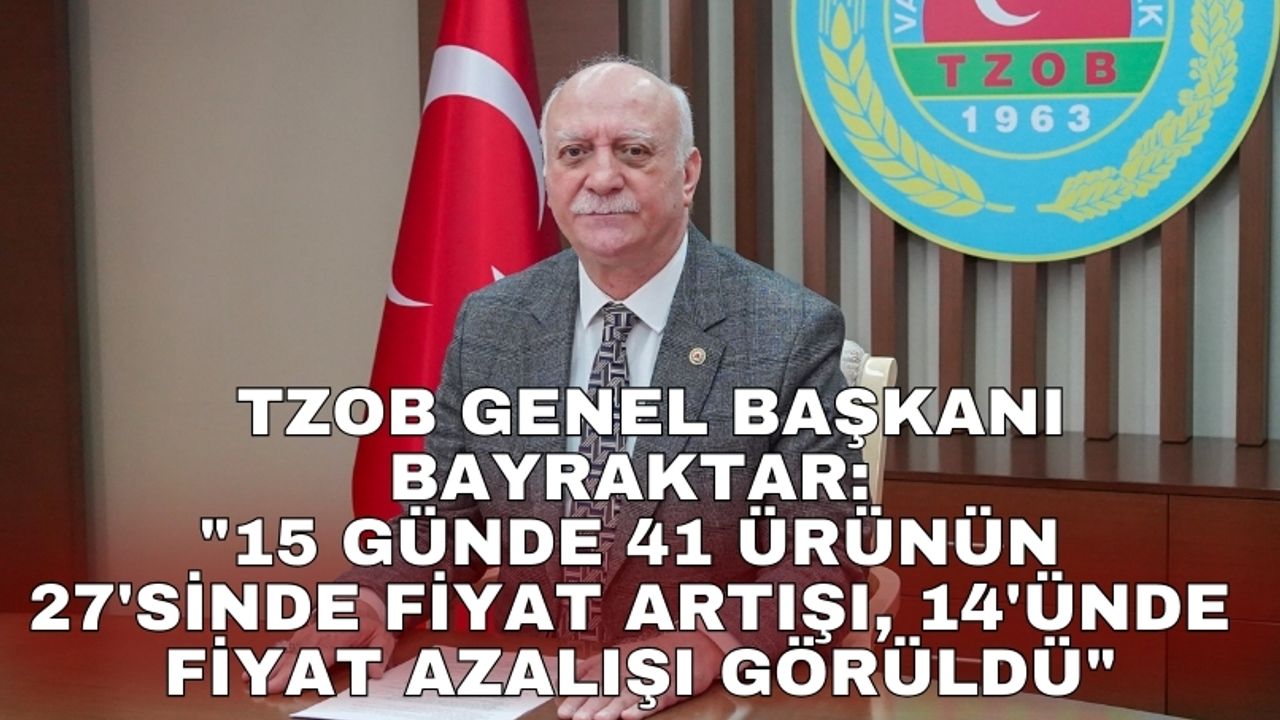 TZOB Genel Başkanı Bayraktar, Ramazan ayı öncesinde temel gıda ürünlerindeki fiyat değişimlerine ilişkin açıklama yaptı. Ramazan ayı öncesinde temel tüketim ürünlerine yönelik fiyat hareketlerinin TZOB tarafından incelenerek, geçen yılın Ramazan dönemi fiyatlarıyla karşılaştırıldığını belirten Bayraktar, son 15 günlük süreçte üretici ve market fiyatlarında yaşanan değişimlerin de ürün bazında değerlendirildiğini kaydetti. Bayraktar, 2007 yılından bu yana TZOB'un Ramazan öncesi fırsatçılığa izin verilmemesi konusunda çalışmalar yaptığını ifade ederek, "Ramazan ayı öncesinde temel tüketim ürünlerine yönelik fiyat hareketleri Birliğimiz tarafından incelendi. Yapılan çalışmada geçen yılın Ramazan dönemi ile bu yılın Ramazan ayı öncesindeki fiyatlar karşılaştırıldı, ayrıca son 15 günlük süreçte üretici ve market fiyatlarında yaşanan değişimler ürün bazında değerlendirildi. Çalışma kapsamında üretici ve market fiyat farkları ile aynı marka ürünlerin farklı marketlerdeki fiyat değişimleri de ele alındı" dedi.