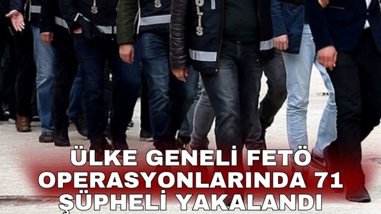 İçişleri Bakanı Yerlikaya, sosyal medya hesabından yaptığı paylaşımda İstanbul merkezli olmak üzere Adana, Aksaray, Ankara, Antalya, Balıkesir, Batman, Bolu, Çanakkale, Gaziantep, İzmir, Kayseri, Kocaeli, Konya, Kırıkkale, Kırşehir, Manisa, Malatya, Muş, Sakarya, Sivas, Tekirdağ, Amasya, Aydın Bursa, Mersin ve Zonguldak'ta FETÖ'ye yönelik düzenlenen operasyonlarda kamu görevlisi ve özel sektör çalışanı 71 şüpheliyi yakaladıklarını belirtti.