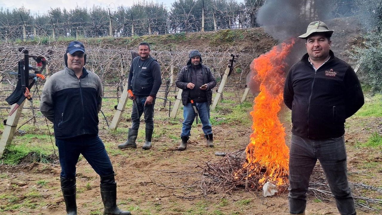 Budama işçisi olarak çalışan Mustafa Akciğer, sabah saatlerinde havanın oldukça soğuk olduğunu belirterek, "Sarıgöl ve çevresinde son iki gündür sabahları aşırı soğuk oluyor. Budama işlerine başlamadan önce bağ çubuklarını toplayıp yakıyoruz ve ısındıktan sonra budama işlerimize başlıyoruz. Ekip olarak bunu sürekli yapıyoruz. Üşüdüğümüzü hissettiğimizde yine çubuk yakarak çalışmaya devam ediyoruz. Başladığımız işi mutlaka soğuk, yağmur demeden tamamlıyoruz." dedi.