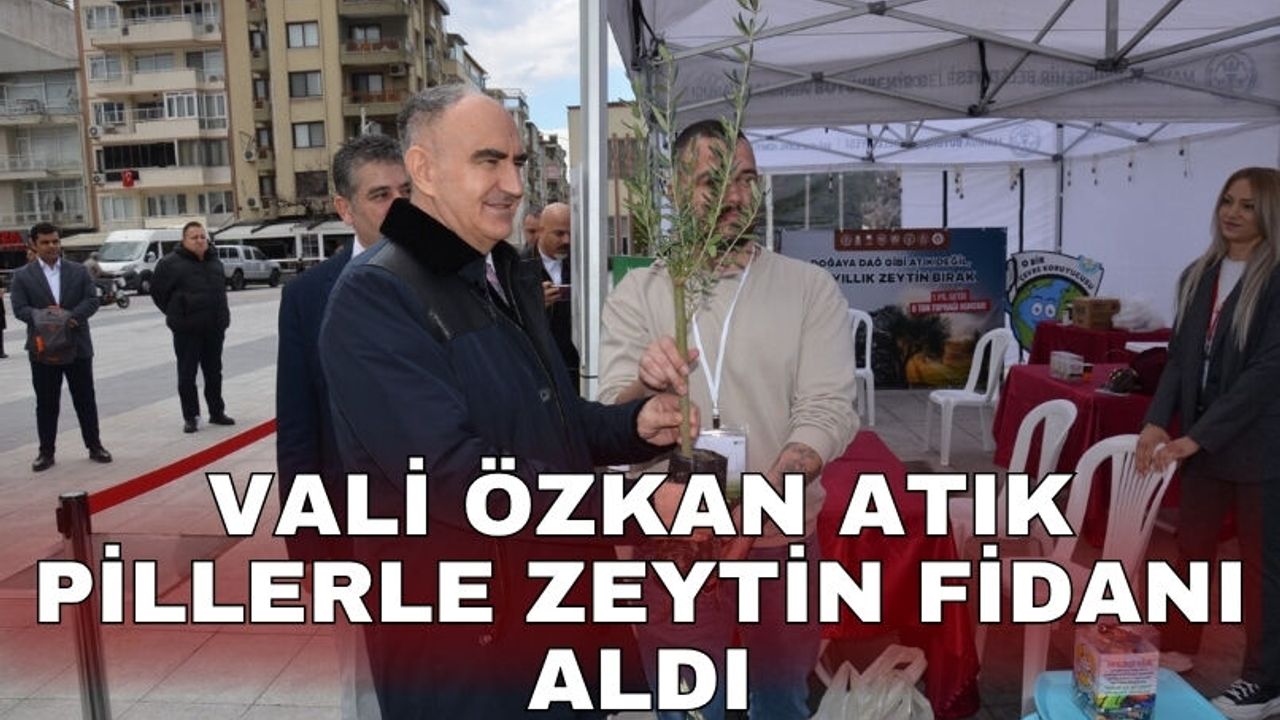 Manisa Büyükşehir Belediyesi tarafından kurulan atık pil toplama standını da ziyaret eden Vali Özkan, biriktirdiği 1 kilogram atık pili teslim ederek kampanya kapsamında zeytin fidanı aldı.