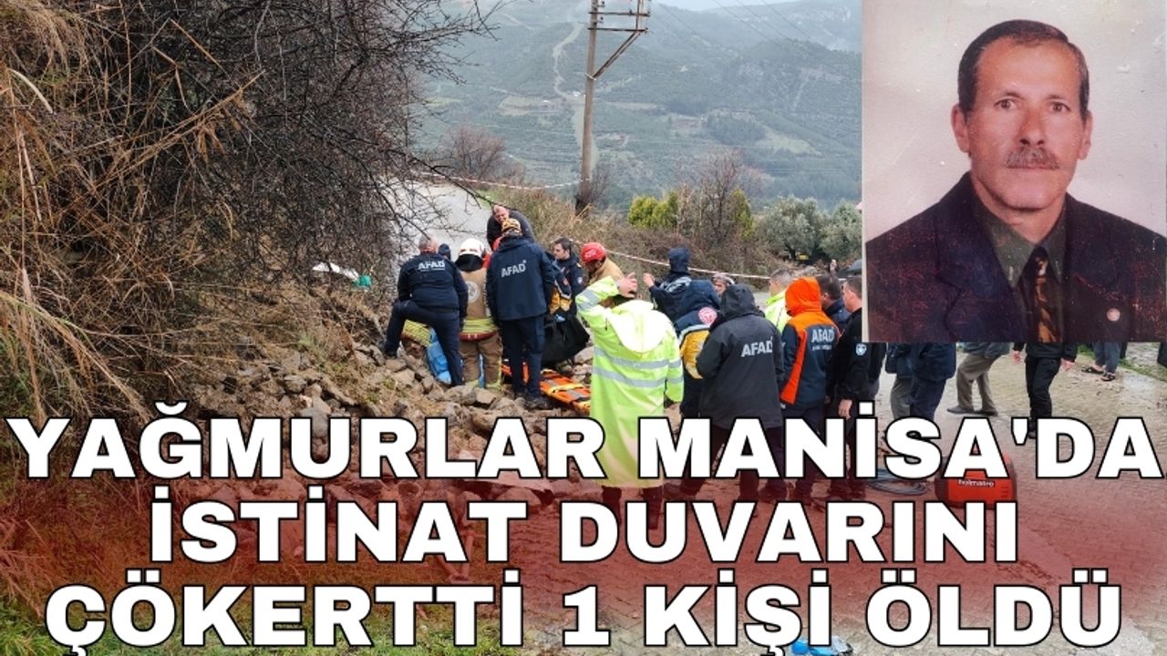 Manisa'da günlerdir etkili olan sağanak yağışlar Yunusemre ilçesine bağlı Karakoca Mahallesinde can aldı. Edinilen bilgiye göre, mahallenin eski muhtarı olduğu öğrenilen Ahmet Yıldırım, evinin önünde bulunan istinat duvarının önüne aracını park ettiği sırada, duvarın aşırı yağışlar nedeniyle çökmesi sonucu meydana gelen göçükte aracının içinde mahsur kaldı.