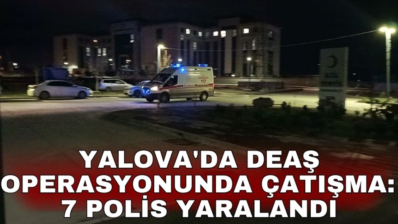 Alınan bilgiye göre, Yalova Emniyet Müdürlüğü Terörle Mücadele Şube Müdürlüğü ekipleri, DEAŞ terör örgütüne yönelik operasyon gerçekleştirdi. Operasyonda çıkan çatışmada 7 polis yaralandı. Yaralılar ambulansla Yalova Eğitim ve Araştırma Hastanesi'ne kaldırıldı. Yaralı polislerin hayati tehlikelerinin bulunmadığı öğrenildi. Öte yandan operasyon devam ederken, Bursa'da özel harekat ekiplerinin bölgeye destek için geldiği öğrenildi.