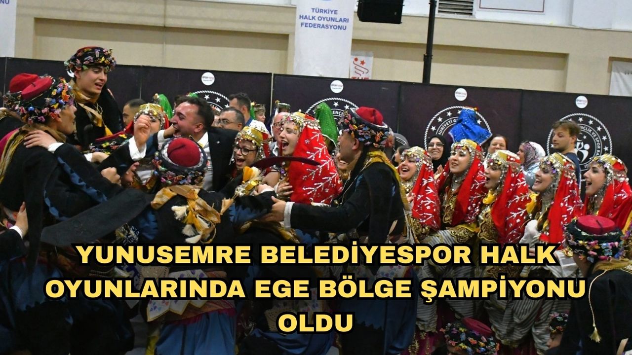 Yunusemre Belediyespor Halk Oyunları Ekibi, Türkiye Halk Oyunları Federasyonu tarafından İzmir'de düzenlenen Ege Bölge Şampiyonası'nda iki dalda şampiyon olarak Manisa'ya çifte kupa zaferiyle döndü. Yarışmalarda harika bir performans ortaya koyan Mavi Beyazlılar, gençler düzenlemeli ve gençler düzenlemesiz karma dalında büyük bir başarıya imza atarak birinci olup zirvede yer aldı. Gençler, bu başarısıyla Manisa'nın 14 yıl süren Türkiye Finalleri hasretine son verdi. Yunusemre Belediyespor, gençler düzenlemeli dalda 89.40 puanla yarışma geneline katılan toplam 30 ekip arasında en yüksek ikinci puanı aldı. Mavi Beyazlılar, 13-15 Haziran tarihlerinde Şanlıurfa'da yapılacak Türkiye Şampiyonası Finalleri'nde Manisa'yı temsil edecek.